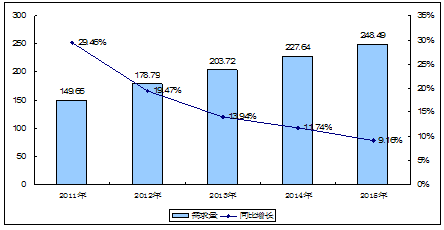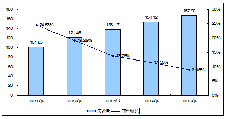 倒车雷达的需求是跟我国汽车 产业政策 以及乘用车的生产、保有量都密切相关的,乘用车产量在快速增长,也对倒车雷达形成了强劲的需求,预计未来五年倒车雷达仍然有很好的市场,到2015年,需求总量将达到167.92万套。