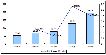 2006年华北地区倒车雷达的需求量已经达到25.4万套,到了2009年达到59.75万套,2010年激素快速增长,比2009年需求量增长36.85%,总需求量达81.77万套。