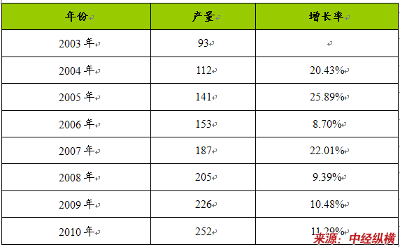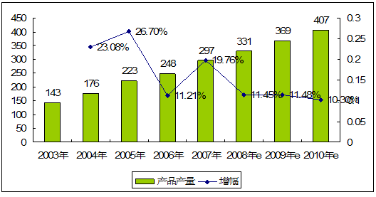 三、彩色涤纶短纤维产品产量 分析 及预测