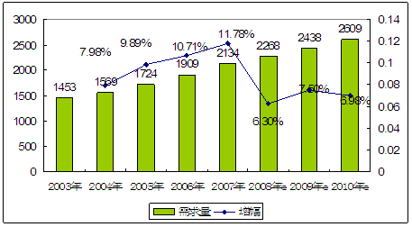 2003-2010年我国电潜螺杆泵市场需求 分析 及预测图