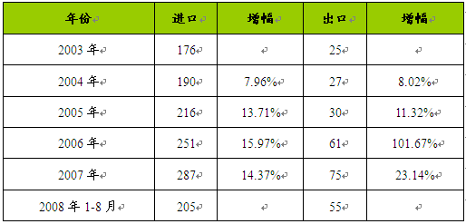 2003-2008年8月我国电潜螺杆泵进出口量统计