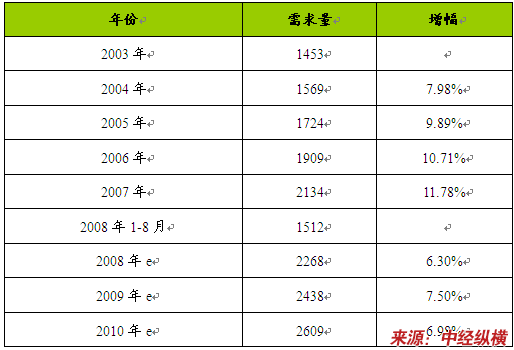2003-2010年我国电潜螺杆泵市场需求 分析 及预测表