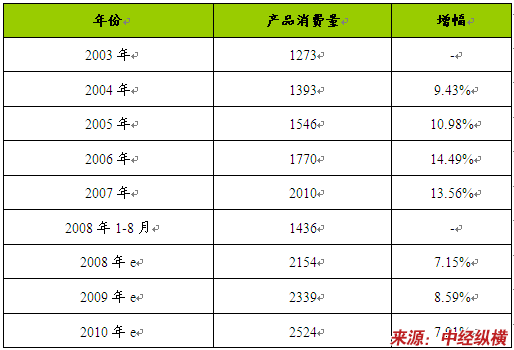 2003-2010年我国电潜螺杆泵消费状况 分析 及预测表