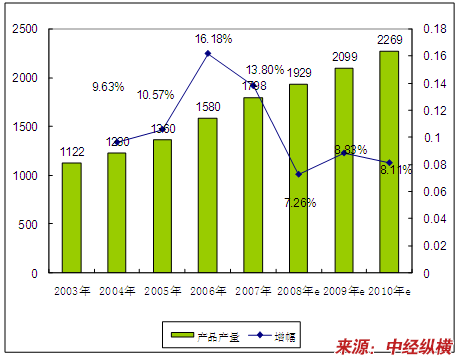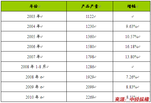 电潜螺杆泵产品属于高技术附加值产品,因此就限制了厂商的进入,产品产量增长率较低,2008-2010年的产品产量增长主要源于现有企业的扩产计划。