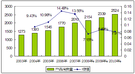 2003-2010年电潜螺杆泵产品产量 分析 及预测图