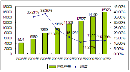 2003—2010年电线电缆油膏产品产量 分析 及预测图