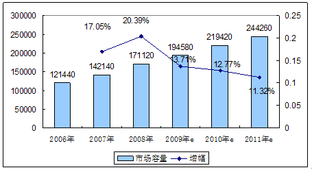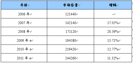 2006-2011年PCD金刚石刀具市场容量预测表 单位:把