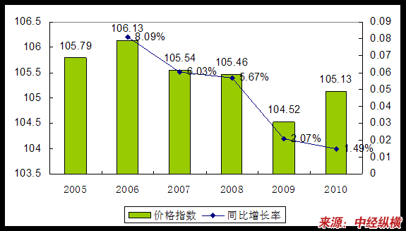 2005—2010年针式打印头价格指数变化趋势图