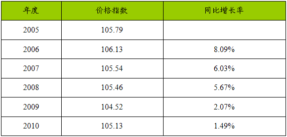 2005—2010年针式打印头价格指数变化趋势表