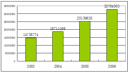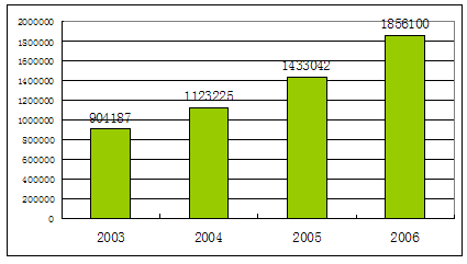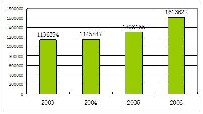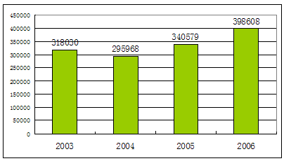 2003年-2006年日用玻璃制品及玻璃包装容器制造业销售成本总额 单位:千元