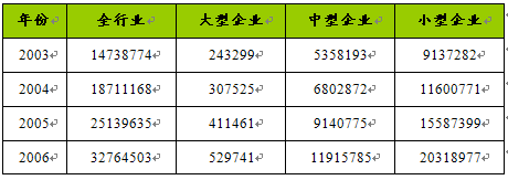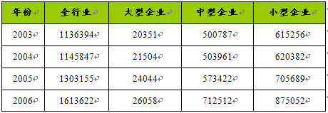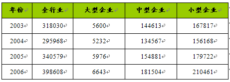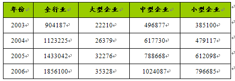 2003年-2006年日用玻璃制品及玻璃包装容器制造业不同规模企业销售成本 单位:千元