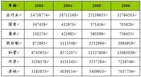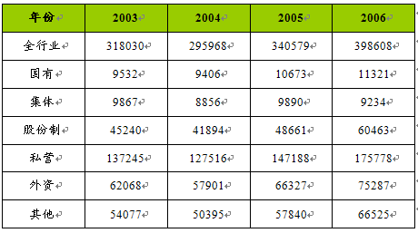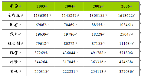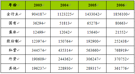2003年-2006年日用玻璃制品及玻璃包装容器制造业不同所有制企业销售成本 单位:千元