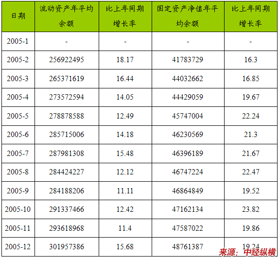 2005年1-12月固定资产净值年平均余额、流动资产年平均余额