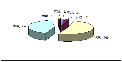 灯饰玻璃消费的主要用户为灯饰生产企业,根据国家统计局统计资料,2008年1-8月我国规模以上灯饰生产企业1497家,灯饰生产企业主要分布在中南、华东两个区域,中南地区有灯饰生产企业643家,其中广东省有607家灯具生产企业;华东地区以江苏省和江苏省为主要生产地区,企业个数分别为144、408家。
