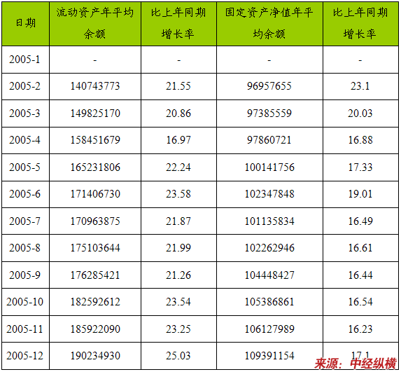 2005年1-12月固定资产净值年平均余额、流动资产年平均余额