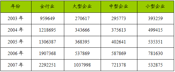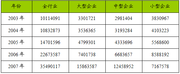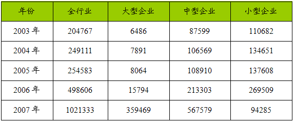 一、2003-2007年 行业 销售成本总额 分析