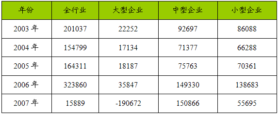 一、2003-2007年 行业 财务费用总额 分析