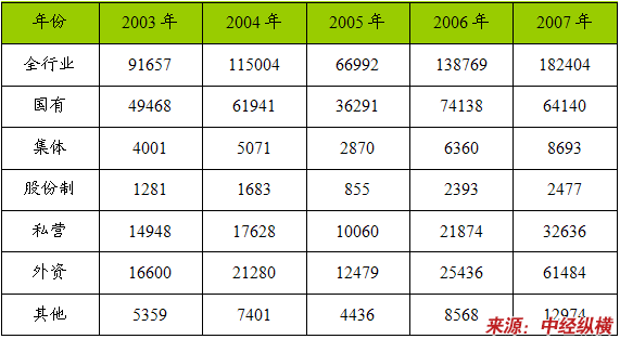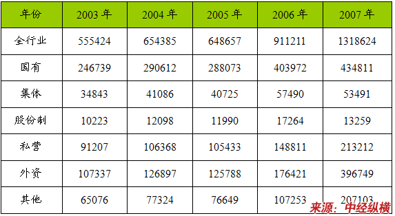 2003-2007年船用配套设备制造市场不同所有制主要企业销售成本比较