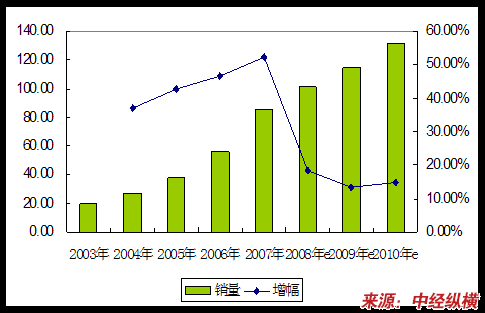 根据目前2008年票据打印机市场状况,可以得知2008年票据打印机增势已经确定,但是增速有所放缓,2008年海外市场增速放缓,国内市场也受到汶川地震影响,政府采购预算降低,预计到2010年我国票据打印机市场销量达到131.88万台。