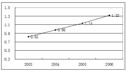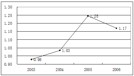 第四节 2003-2006年日用玻璃制品及玻璃包装容器制造 行业 流动资产总额 分析