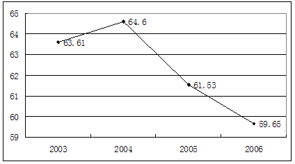 2003年-2006年日用玻璃制品及玻璃包装容器制造业资产负债率 单位:%