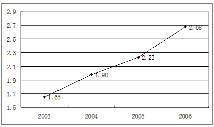 2003-2006年日用玻璃制品及玻璃包装容器制造业流动资产周转次数 单位:次