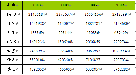 2003年-2006年日用玻璃制品及玻璃包装容器制造业不同所有制企业总资产 单位:千元