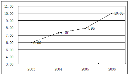 2003-2006年日用玻璃制品及玻璃包装容器制造业资本保值增值率 单位:%