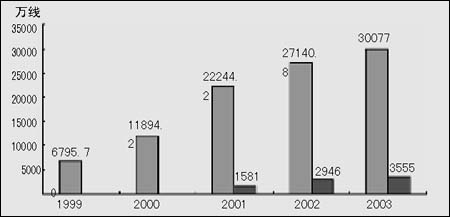 中国电信和中国网通在2003年加快了相互渗透的步伐,但仍然集中在重点地区和重点业务。