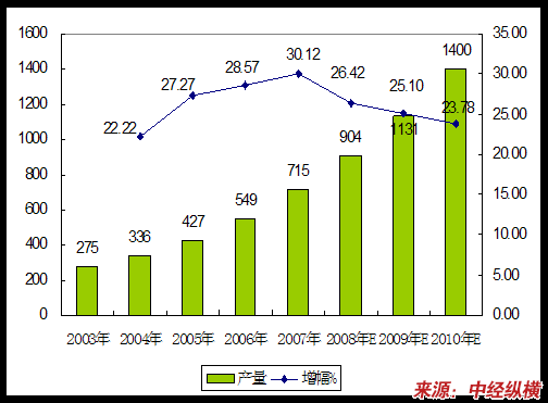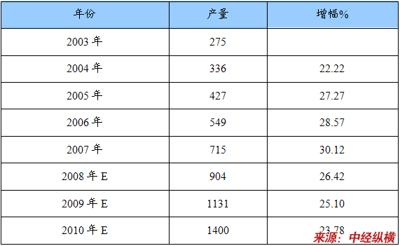 综合我国GDP及DHA国内市场在建项目及扩产计划情况,可以保守估计,2008-2010年我国DHA产品年增长率分别达到26.42%,25.10%,23.78%,2010年产量达到1400万吨。