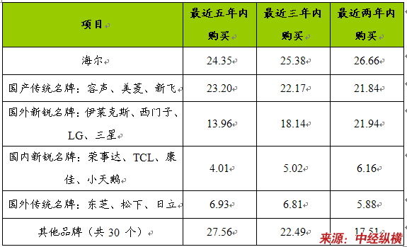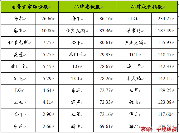 3、传统名牌受到新锐名牌的强力冲击,电冰箱市场上名牌间竞争异常激烈。