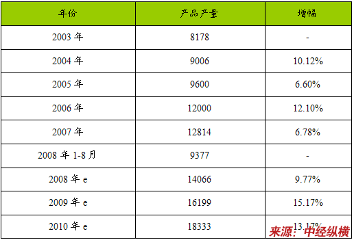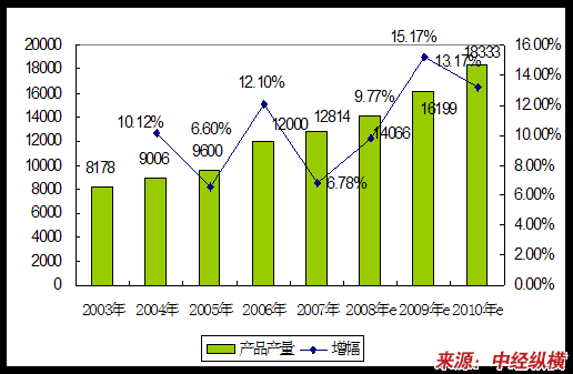 2003年我国液压打包机产量为8178台,2004年产量为9006台,比上年增长了10.12%,2005年产量9600台,比上年下降6.60%,2006年产量为近年来增长最快的一年,产量增幅达到12.10%,到2007年我国液压打包机产量为12814台,比2003年增长了56.68%。从现有企业规模及 行业 的未来需求上判断,预计未来我国液压打包机 行业 的生产规模和产能继续扩大,产量增速进一步加快,预计到2010年我国液压打包机 行业 的产量达到18333台。