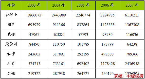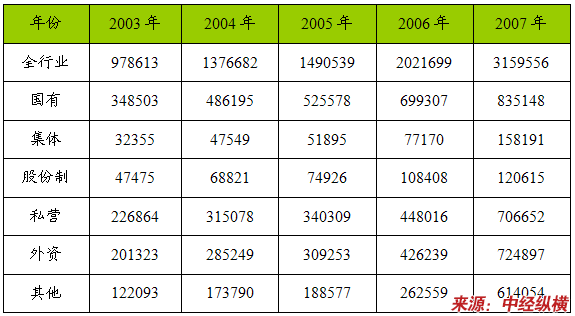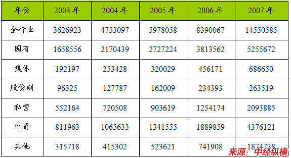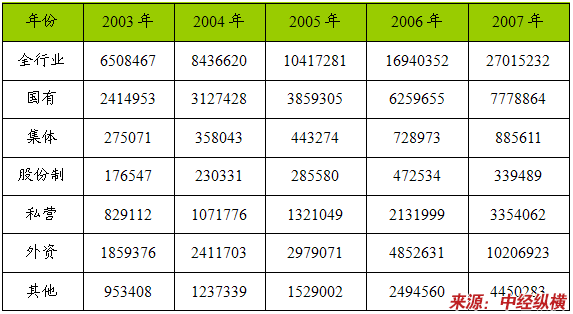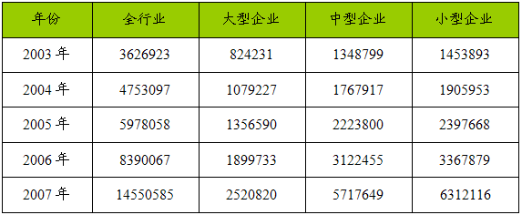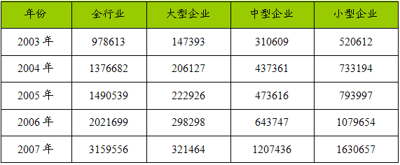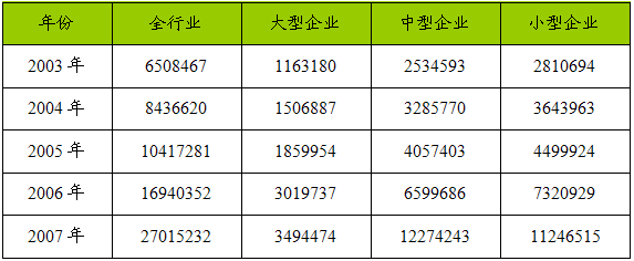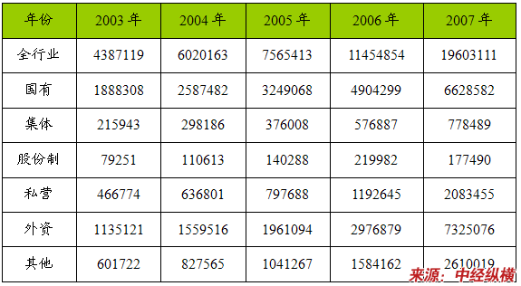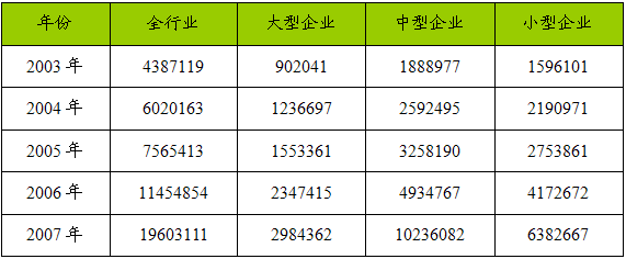 一、2003-2007年 行业 总资产 分析