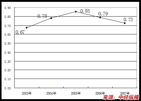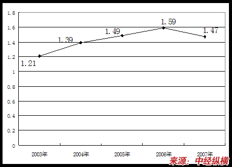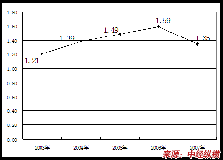 一、2003-2007年 行业 总资产周转率 分析