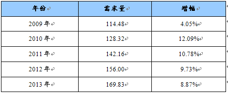 2009-2013年我国倍绣生物蛋白胶市场规模预测 单位:万套