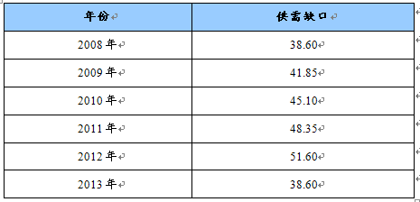 2008-2013年倍绣生物蛋白胶市场供需情况预测 单位:万套