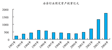 2004年1-4月,我国500万元以上项目中,钢铁投资增长99.1%,铝业投资增长47.7%。而且从趋势看,投资增长的惯性仍很强。