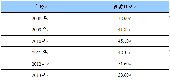 2008-2013年生物蛋白胶市场供需情况预测 单位:万套