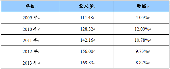 2009-2013年我国生物蛋白胶市场规模预测 单位:万套