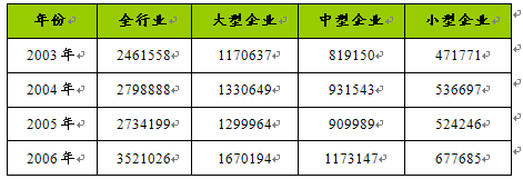 2003年-2006年涤纶纤维制造业不同规模企业利润总额 单位:千元