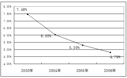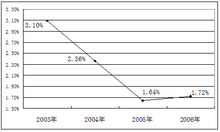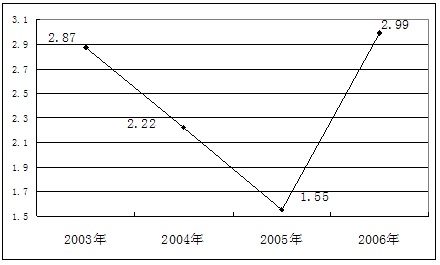 2003年-2006年涤纶纤维制造业销售利润率 单位:%