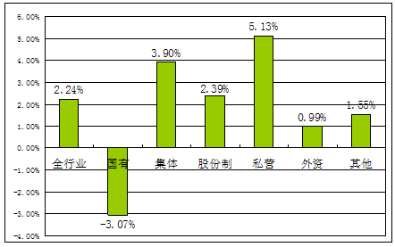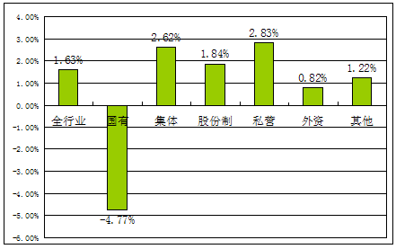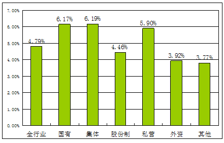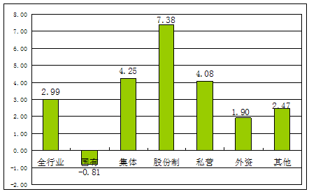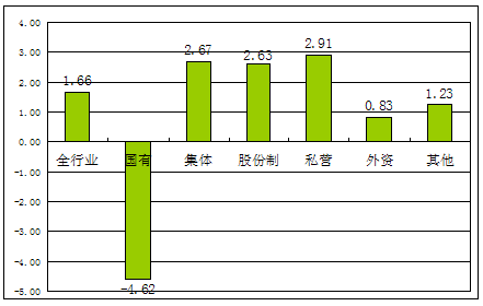 2006年涤纶纤维制造业不同所有制企业销售利润率 单位:%