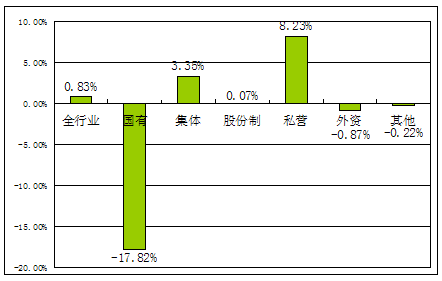2006年涤纶纤维制造业不同所有制企业净资产利润率 单位:%
