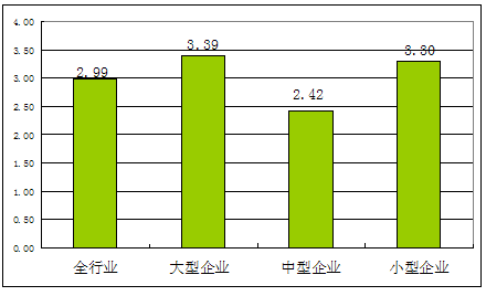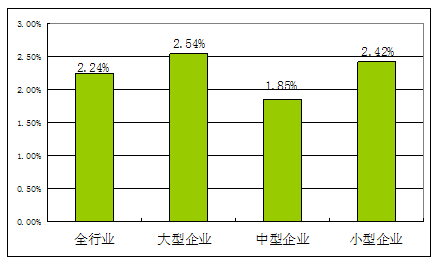 2006年涤纶纤维制造业不同规模企业成本费用利润率 单位:%