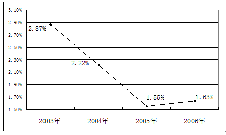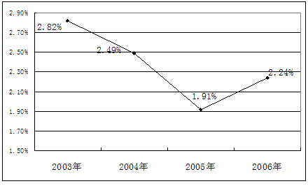 2003年-2006年涤纶纤维制造业成本费用利润率 单位:%