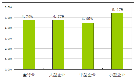 2006年涤纶纤维制造业不同规模企业销售毛利率 单位:%