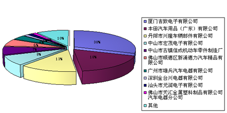 我国倒车雷达的主要产区集中在广东省。如下图所示:
