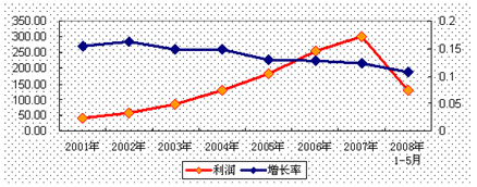 2001年-2007年,该 行业 毛利率呈下降趋势,2007年该 行业 毛利率为11%,与历史最高水平相差近4个百分点,但与其相反的是,该 行业 净利润在不断上升,2007年达到299.18亿元,这说明电子元件 行业 规模在不断扩大,该 行业 在销售过程中除了控制销售成本以外,对销售期间产生的其它费用进行优化,改良经营方法,使得 行业 利润不断扩大。