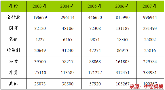 2003-2007年船用配套设备制造市场不同所有制主要企业利润总额