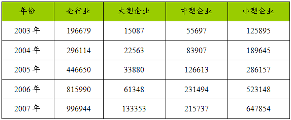 2003-2007年船用配套设备制造市场不同规模主要企业利润总额